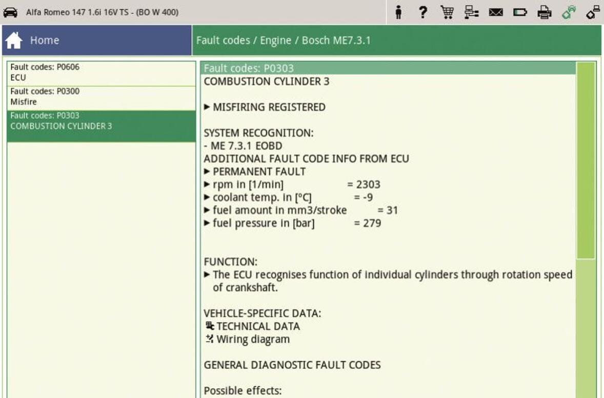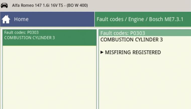 En este caso se almacenó el fallo PO303.